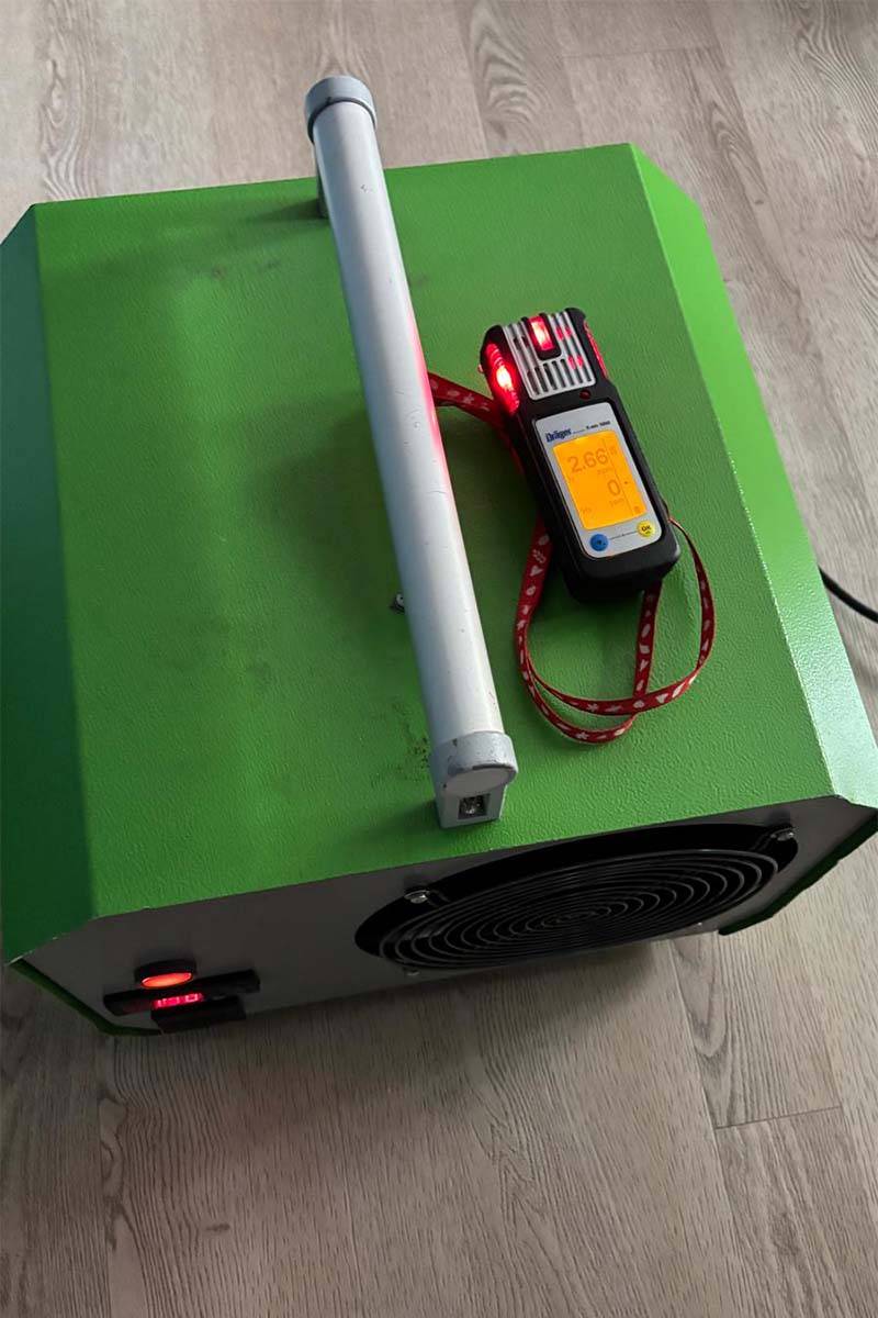 Etap 4: Deaktywacja i wietrzeniePo upływie zaplanowanego czasu wyłączyliśmy urządzenia. Odczekaliśmy niezbędny okres, w którym niestabilny ozon (O3) uległ naturalnemu rozpadowi, przekształcając się z powrotem w całkowicie bezpieczny tlen (O2). Następnie intensywnie przewietrzyliśmy całe mieszkanie.